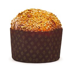 INGREDIENTI: farina 00 di grano tenero, burro, tuorli d’uova pastorizzate, zucchero, fichi secchi (fichi, acqua, anidride solforosa, potassio sorbato)(8%), mele candite (8%), lievito naturale da pasta madre (farina 00 di grano tenero, acqua), noci (5%), miele d’acacia, pasta d’arancia candita, latte intero in polvere, sale, vaniglia bourbon del Madagascar.