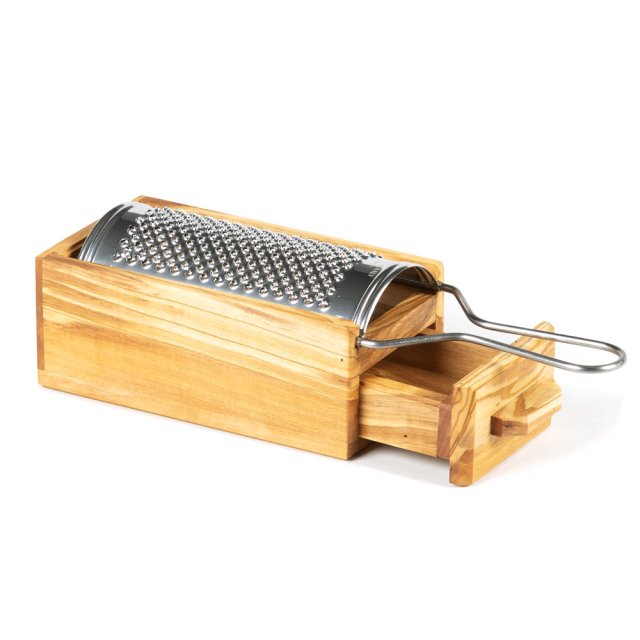 DESCRIZIONE: Grattugia per formaggio in legno d'ulivo. La scatola in legno d'ulivo in dotazione è progettata per raccogliere i pezzi e ridurre al minimo la sporcizia, la grattugia è lavabile in lavastoviglie, la scatola in legno è lavabile SOLO a mano, di tanto in tanto, è consigliabile trattare il legno con un po’ di olio d’oliva per preservarne la lucentezza e mantenerlo in ottime condizioni