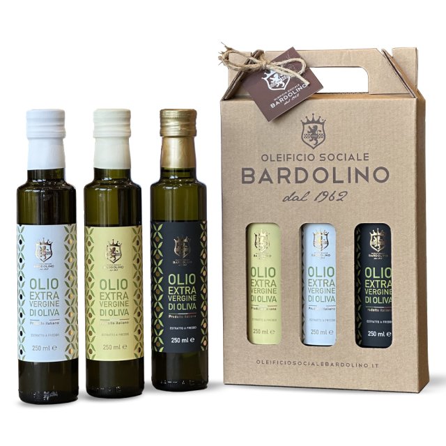 Valigetta regalo con le nostre tre qualità di Olio Extra Vergine di Oliva, ideale per un regalo o per poter provare la diffrenza dei nostri oli.